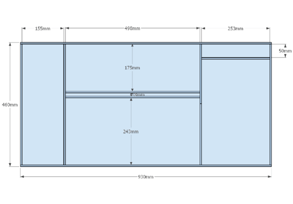Stark belastbares Material, bestehend aus einer Mischung aus 18mm und 36mm dicken Wänden mit hochwertigen Oberflächen, welche sich harmonisch in die Umgebung des Raumes einfügen.