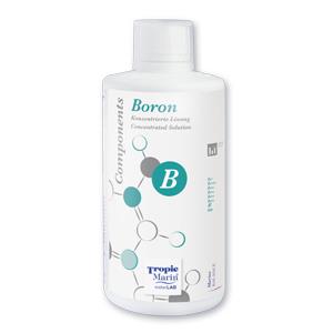 Bor ist ein Spurenelement mit vielfältigen Funktionen im Stoffwechsel und Wachstum von Korallen. Außerdem trägt es zur Stabilisierung des pH-Werts bei. Im Meer kommt es in relativ niedrigen Konzentrationen von ca. 4,5 mg/l vor.